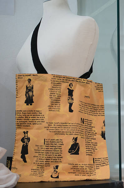 “The project Socialdress – A small retrospective sheds light on a decade of my enthusiastic work as a seamstress in the frame of the ongoing Socialdress project. I use the term “social dress” for clothing that has an integrative effect in terms of community. The Socialdress workshops spread knowledge about clothes making, and at the same time reinforce the awareness about the consequences of globalization to the Slovenian textile industry, and about the gradual disappearance of craft skills. At Socialdress workshops we create functional items of clothing with a lot of soul that are easy to make as well. An important part of the workshops is communication – the exchange of stories and experiences. The project Socialdress – A small retrospective is an installation composed of a series of collages-posters in the form of banners, leaning against the walls with the help of handholds made from cardboard tubes used for storing fabric. The posters feature documentary photographs accompanied by texts in the form of slogans, which highlight the most important traits of individual projects, but they can also be interpreted as a sort of a zeitgeist, reflecting the period in which they were created.”