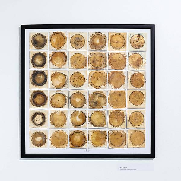 < Aleš Horvat, Sine anno, 2022, mešana tehnika, 70 x 70 cm.