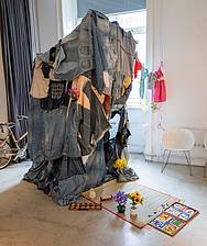 Umetniki in umetnice prihajajo ali izvirajo iz Etiopije, Gane, Gvatemale, Turčije in Nemčije. Dela so narejena v številnih tehnikah in iz najrazličnejših materialov, in sicer od odpadkov, plastike, kovine do najdenih predmetov, papirja in tekstila, med njimi pa so risbe in slike, skulpture in (kinetični) objekti, vezenine in instalacije, fotografije in knjige umetnikov. Razstava se osredini na umetniška dela, ki so po eni strani lahka in materialno varčna, po drugi strani pa predstavljajo krajevne posebnosti, narejene s tehnikami, kot so kolaž, sestavljanje najdenega uličnega materiala, krpanje, šivanje, sestavljanje ali asemblaž. Tako so njihova dela hkrati zelo urbana in tradicionalna, saj se umetniki in umetnice ukvarjajo s temami kultur, v katerih še vedno živijo ali iz katerih so se izselili, toda njihov izvorni umetniški poriv je preživel tudi v novih okoljih.