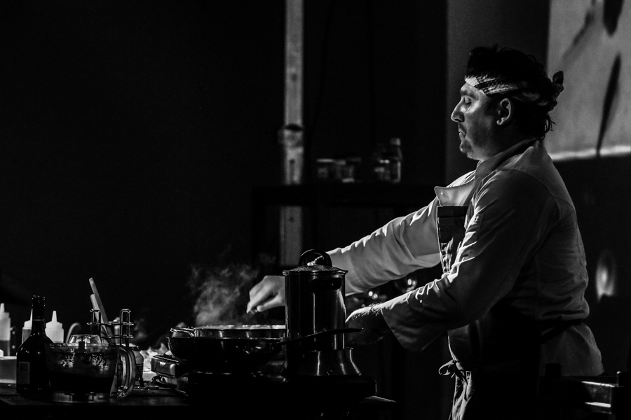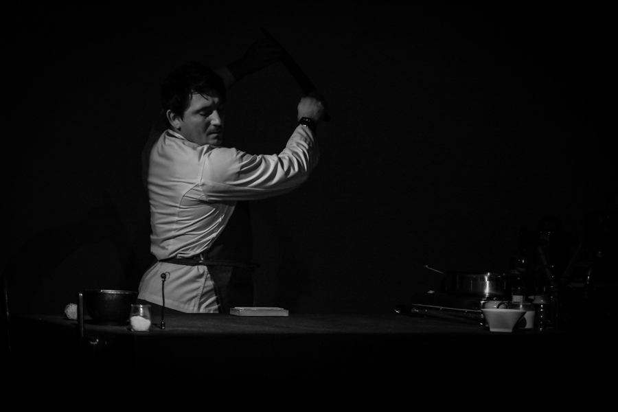 Sinestetični performans, v katerem nastopajo kuharski mojster, začarana kuhinjica in sonificirane sestavine. Noži se drgnejo drug ob drugega, čebule vokalizirajo svojo razpirajočo se mutacijo v kakofonični a capella, cvrčeče olje zdrsne v ploho Bartok-pizzicatov, zapeljive arome pa gledalca potopijo v multi-senzorno nadgradnjo vsakdanjih praks.