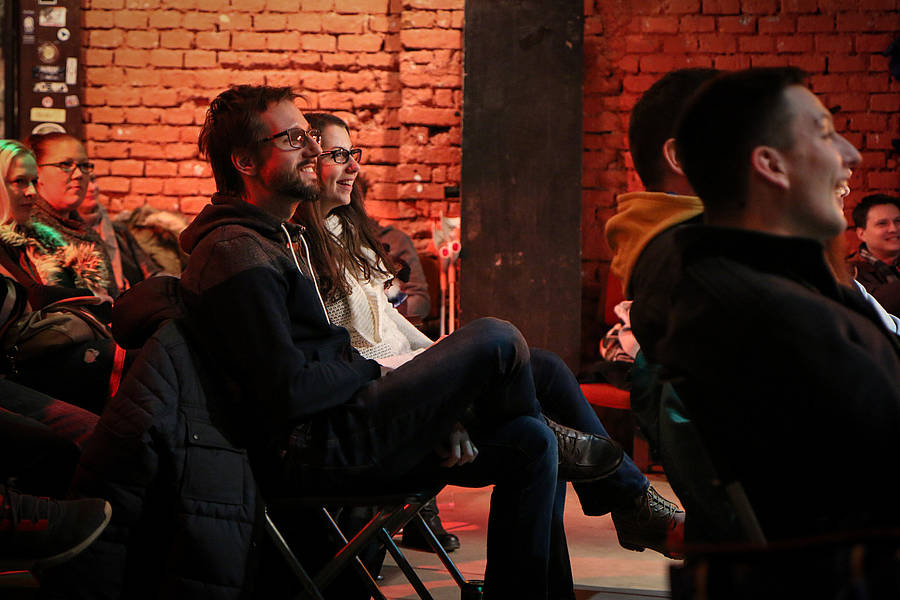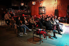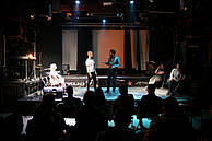 Impro-performans: Banda Ferdamana in koncert Marš 27The curtain goes up. The actor stands still on the stage, the lights pointed toward him. From the darkness in front of them, an unknown voice screams: "You are a big bowl of oatmeal!" He wipes the sweat off hisforehead and begins to imitate a bowl of oatmeal. Photo: Matej Kristovič |
