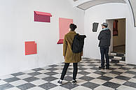 After debuting in Črnomelj in June 2018, the series Prelomi (Breaks) is now showing in Maribor. Formats vary, sizes become smaller or larger; new paintings and modes of presentation arise and connect into a spatial installation; colors are added, pictorial fields are placed in dialogs, the painted surfaces come alive. Popenko's peculiar work in progress is built on a solid concept, which is enhanced through the power of visual language, and re-defined each time with each new exhibition space. Visitors are therefore able to experience a unique setup, visible only now and only here, with the possibility of following the course of future editions, which the artist plans to install in other venues.