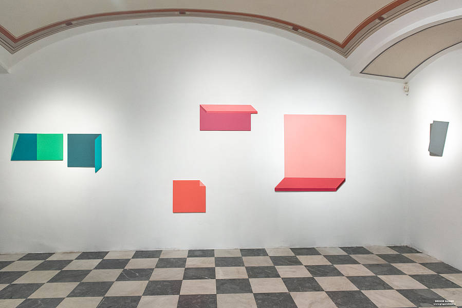 The presented works from his most recent creative period are related to the exploration and continuation of a series of paintings dealing with illusory folds, or breaks, in the two-dimensional surface.