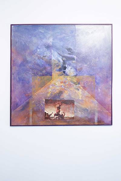This cycle is his engaged entry into current issues. He introduced realism into the paintings in the form of art quotations and emphasized actual events, thus knocking directly on everyone's conscience. He artistically preserved his characteristic manuscript: thin applications of colored layers, soft color transitions, on some parts strong traces of gesture, together with thoughtful geometric interventions as spatial definitions and illusionist aids.« (author of the text: Milena Zlatar)