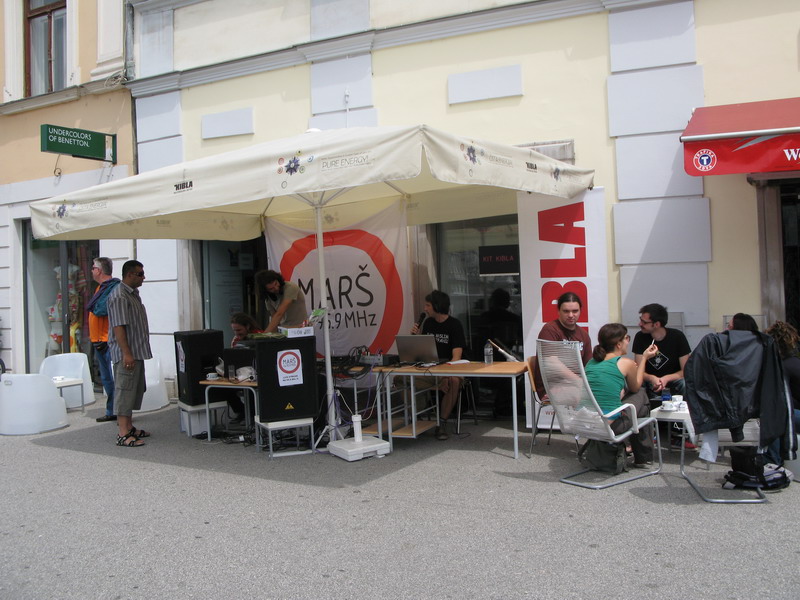 Visit to MARŠ radioplace in front of Communication InformationOn Statehood Day, Tuesday 25 June 2009 between 11 am and 4 pm, KID KIBLA participated in the project led by MARŠ Radio within the Public intervention campaign, taking Point at Glavni trg 14, Maribor. The topic of discussion was Spaces of cultural diversity. As the organiser of ROMfest festival, KID KIBLA presented on the air its cultural and educational programme within ROMfest festival, which was followed by a selection of Roma music. Music was selected by DJ Zeki and the programme was hosted by Ike. Photo gallery |