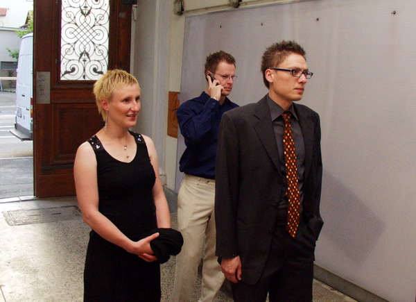 Jasna Puntar (Delo), Dejan Pestotnik, Boštjan Grošelj (urednik Maturantske) z ženo Sonjo Lidijo