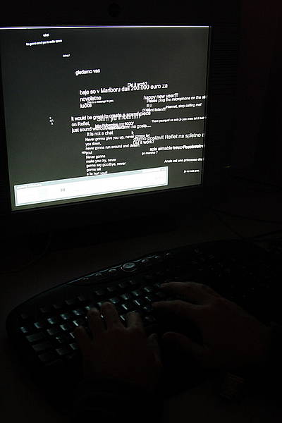 Public presentations of the project was held simultaneously in MMC Kiberpipa, Ljubljana and in MMC Kibla, Maribor. Its form was that of a dislocated multimedia installation that actually “absorbs” the visitor, who thus integrated in the system becomes a co-creator of Reflet.