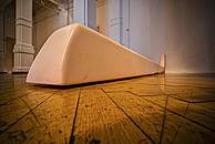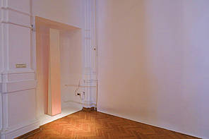 Oto Rimele's Anomalies are visual exceptionalities, two-dimensional canvases with a three-dimensional effect, in which we perceive the length, surface and volume at the same time. Through the movement of the observer across the gallery space, Rimele adds the "fourth dimension" – time, which is related to the duration of the observer's presence. It is only through this kind of co-existence that anomalies are created: the observer defines the subject matter of the works subjectively, and retrospectively. Each of the works thus becomes an anomalous image, a subjective emergence of a visual perspective that is reflected in the gallery space. The image becomes a proper object: it is there, because we see it; it is not there, because we are not there.