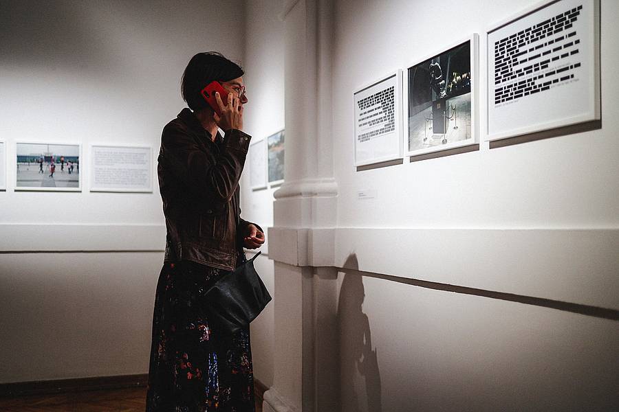 The works on display are composites of photographs by Vito Oražem and words by Lela B. Njatin. In one of their previous exhibitions, which they put on Instagram, they ask: “What does the word contribute to the photograph; what does the photograph contribute to the word.” Through the participation or response of visitors on the platform, they “wanted to find out how communicative is the 'additional effect' that is created when we connect a photograph and a textual unit, that is, the additional effect' of the way in which it exists in the photograph for itself or the textual unit for itself.” With the analogue format, they have “intervened” on the digital environment during the pandemic and have linked the analogue and the digital in their own way, which can be debatable at a time when almost every electrical device is also digital.