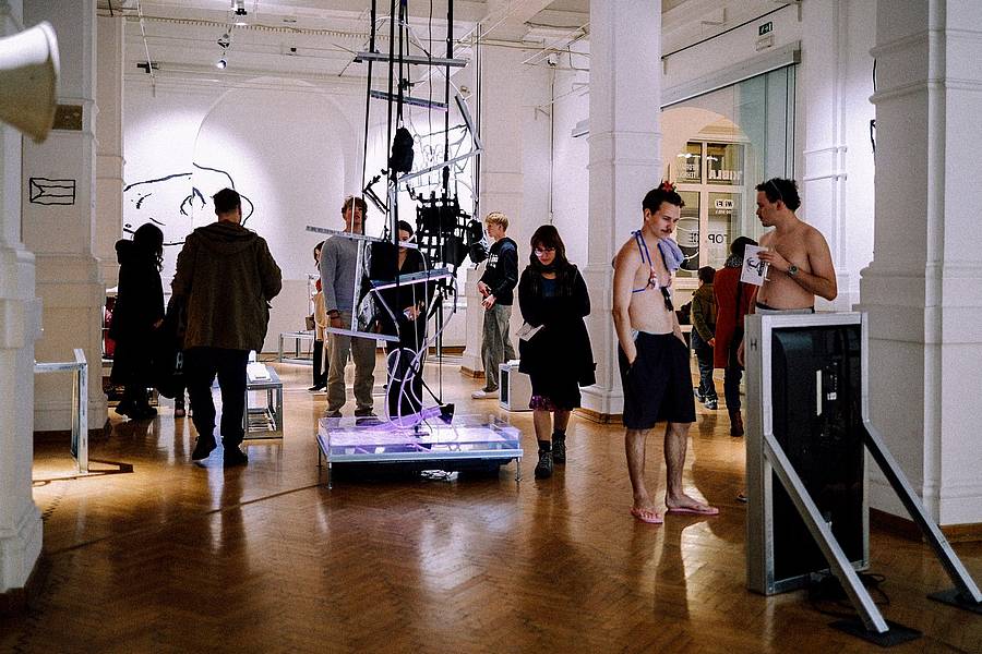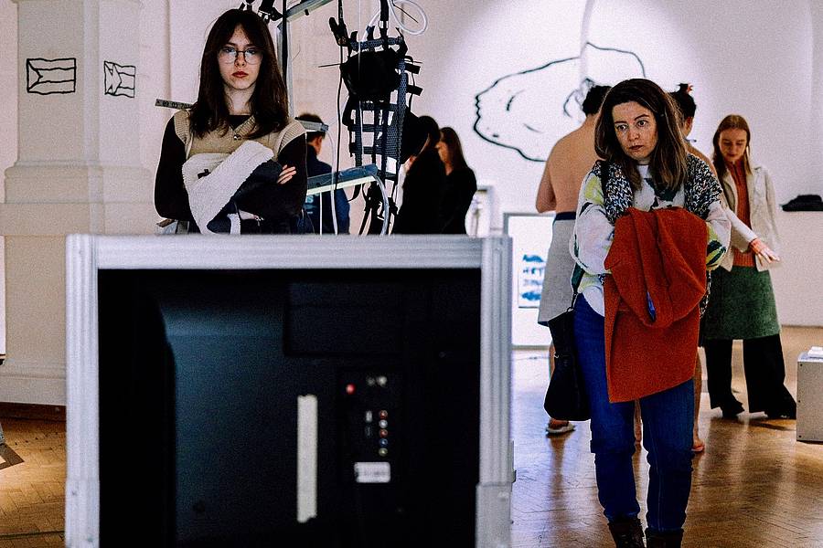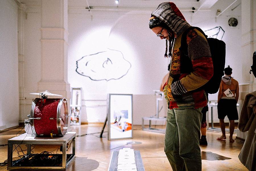 Although we first came to know him through his drawings, comics, and illustrations, Matej Stupica also works in other artistic fields. His first solo exhibition in Maribor will showcase this creative multilayeredness through installations created with the involvement of many collaborators. Toplice/Topless is a unique gesamtkunstwerk in which drawing, shifting from static to animated, intertwines with sound, text, video, musical instruments, and various objects that, combined with electromechanical kinetics, add a performative dimension to the work. The arrangements come to life in either controlled or chaotic dynamics and, amid the general cacophony, connect to form a unique environment into which we can immerse ourselves or simply observe from the “shore.” Entering this imaginary world, where sound and image shape a complex installation, we encounter contemplative sensations that place us in a kind of a “spa” of our own – a soothing environment that imposes no diagnosis.