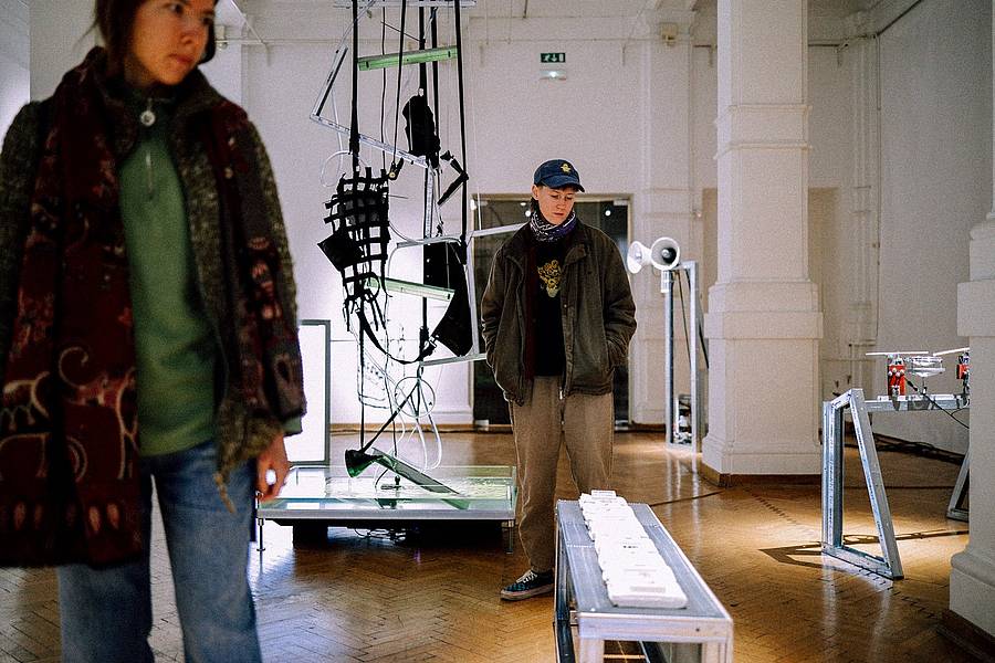 Concept and realization: Matej Stupica / Text: Andrej Tomažin / Voice: Ana Pepelnik and Andrej Tomažin / Costumes: Hana Podvršič / 3D animation and video montage: Neža Knez / Sound collaborator: Staš Vrenko / Coding: Matic Potočnik / Electronics: Gregor Krpič / 3D recording and processing: Anže Mrak / 2D text animation: Jure Lavrin / Fine mechanics: Bojan Stefanović / Song: Irena Tomažin / Song mix: Tomaž Grom / Thanks to: Aljaž Lavrič, Krištof Modic, Uroš Mehle, Katerina Mirović (Stripcore), Uroš Vovk, DA Tisk, Martin Lovšin Schintr, Primož Čučnik, Tomo Per, Andraž Magajna, Lenka Đorojević Production ACE KIBLA / Coproduction: Obratomlat studio / Design: Duplo ništa / Production of the exhibition Toplice/Terms, 2024: Match Gallery, Museum and Galleries of Ljubljana