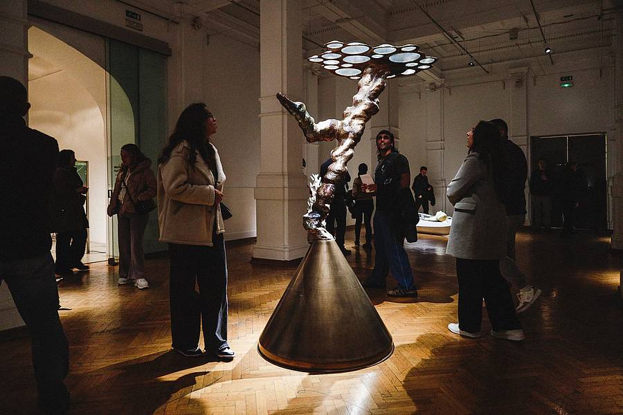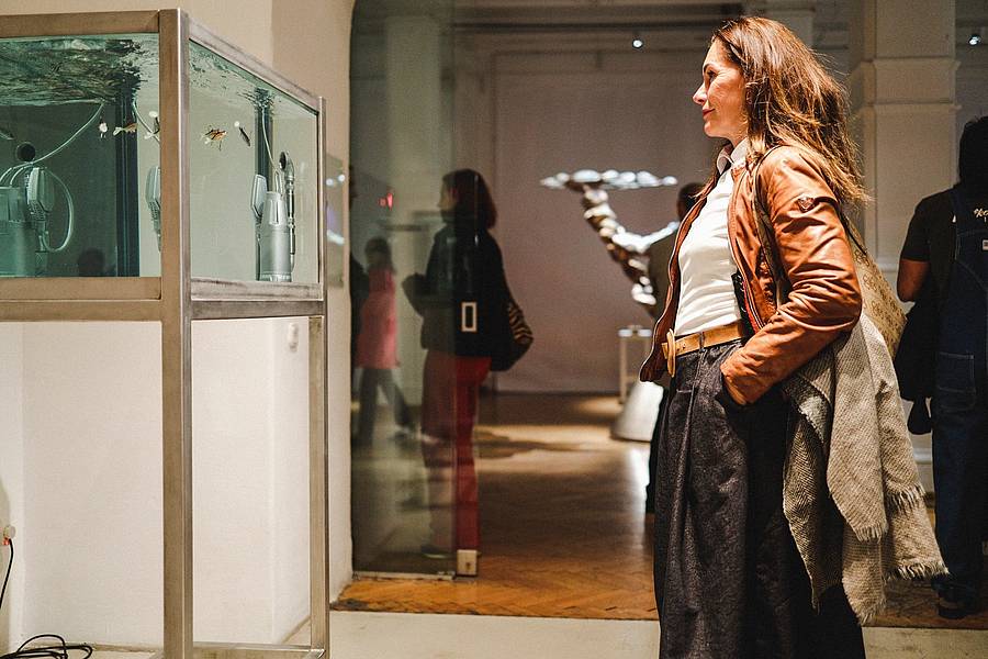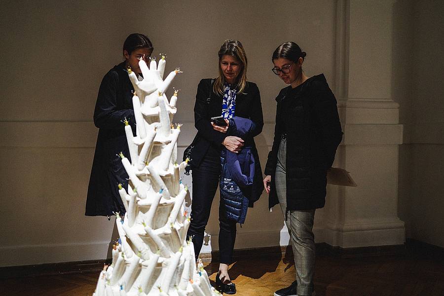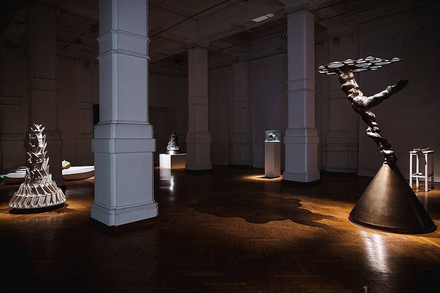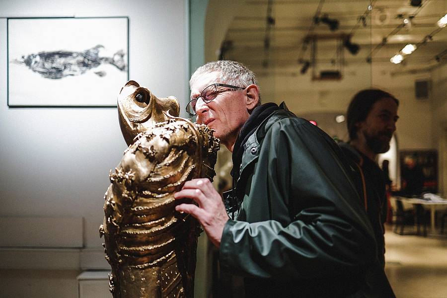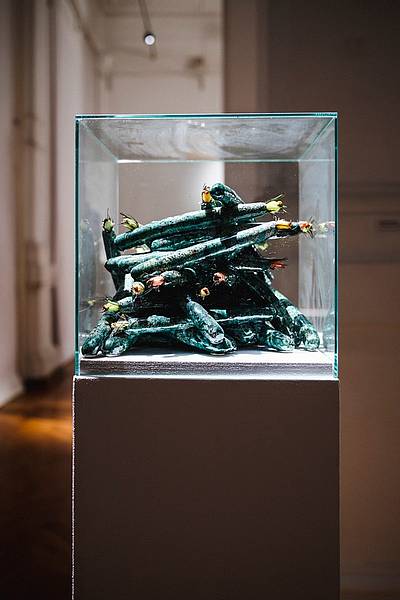 Mirko Bratuša, one of Slovenia’s best-known and most prolific sculptors, has not only presented numerous exhibitions and installations but has also created a wide range of public sculptures and monuments. He approaches his work through diverse techniques and employs a broad spectrum of materials, from natural ones such as clay, wood and metal – especially bronze – to artificial materials like polyester as well as industrial products. His works are often animated with electricity, heating elements and water, enriched with sound or even interwoven with new technologies. The layering of materials, the multiplicity of motifs and themes and the simultaneous interplay of archaic and contemporary subjects give rise to allegorical, symbolic and fantastical images, in which detail is as significant as the whole.