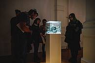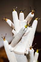 In the hybrid iconography that fuses the anthropomorphic and the zoomorphic, new beings emerge – metaphorical and surreal – whose suspended and inquisitive presence may at first amuse us and even appear real. Yet a closer look at individual visual “implants” reveals something apocalyptic, fatalistic, ominous, cautionary and socially critical. Their subtle inner beauty can veil a foreboding sense of catastrophe, the intertwining of the symbolic archetype and the unconscious, the individual and the collective, the real and the unreal, i.e. created and yet modeled in the image of no one. These figures summon distant stories, stir wonder and awaken primal memory, only to hurl us into the stark realities of bioengineering, genetics and cloning on the one hand and the manipulation of society and nature on the other, leading to global crises, pandemics and wars.