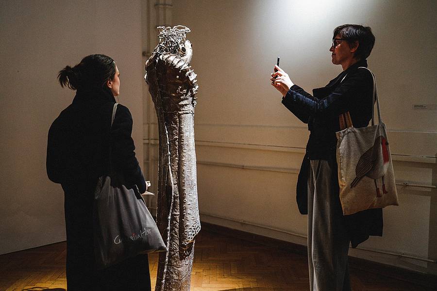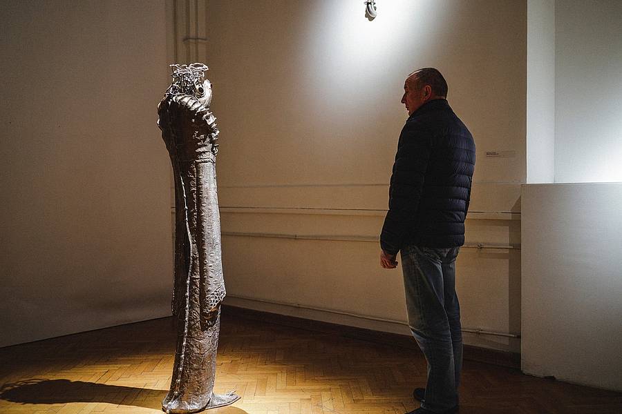 Just as Mirko Bratuša enchants with the magic of his figures, he also disenchants with their presence, landing a direct blow to the paradox and banality of existence, not only as an existential idiom or predicament, but as an existentialist reflection that unfolds on the physical and material as well as on the metaphysical and mystical level. And immanently, profoundly mythical. His “creatures” are at once gentle and attentive yet rebellious and raw, sometimes proudly exhibiting their beauty on a pedestal regardless of their condition, sometimes twisted and constrained, undisturbed in their self-image of grandeur and in the role they are destined to play in an animated sequence of poses, positions and grimaces. This expressive and aesthetic journey from prehistory to the present becomes a point of identification for the self-reflection we experience here and now on an excursion into timelessness. Perplexed, we connect spaces and worlds filled with vehement presence and repressed anxiety, searching for hidden and enigmatic codes that might miraculously catapult us into a redemptive future.
