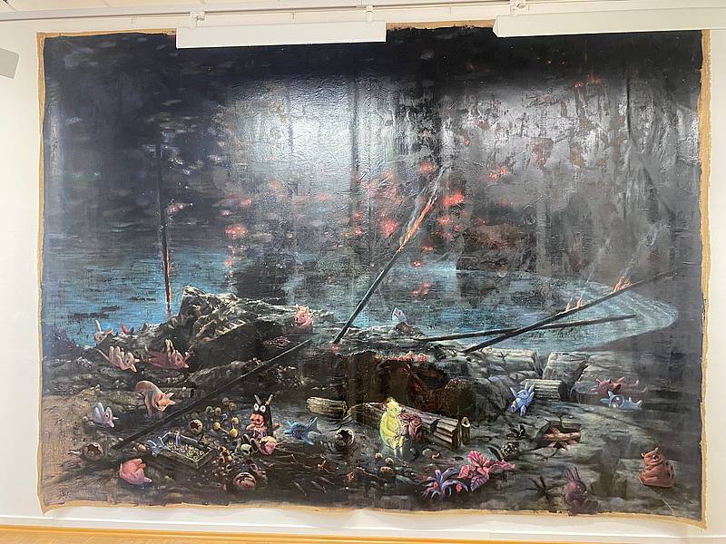 The sarcastic title of our exhibition is aimed at the innovative image and style combinations of the two painters, whose fictional, mutated or real characters/natures capture our imagination, looking at us with strange grimaces, and also turn into melancholy dreams. What is also quite unusual for our Western artworld scene is the fact that the two artists worked as a collective for this exhibition, i.e. the paintings were designed and developed by both of them together.