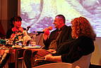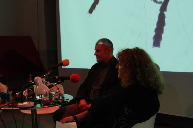 The talk was moderated by Sonja Porle and spiced up by music and visuals by the video artist Ana Pečar.