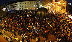 »Biti zraven« Fotoreporterji med aktivnimi državljani na trgih in ulicah mest Slovenije od 2. novembra 2012 do 8. februarja 2013.