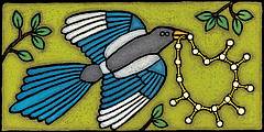 < Lila Prap: Sraka, pastel na papir, 2022