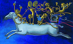 “Umetnika sta se slikarsko odpravila v svet živali in si vzela svobodo, da se umetnosti lotita na igriv način. Živalski svet je manj zapleten od človeškega, a ni pomensko zožan svet. Slikarka in slikar sta skupaj inteligentno uporabila sposobnost umetnosti, da nam na različne načine širi spoznanja. Včasih tudi tako, da nas opomni, da je v svetu treba odpirati prostor optimizmu, igrivosti, medsebojnim prijaznostim in sreči.” (Nadja Zgonik)