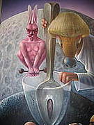 Dosegel je prefinjenost starih mojstrov, še več: njegovih slik ni mogoče postaviti v katerokoli stoletje, čeprav operira z arhetipi, slike prodorno govorijo o tukaj in zdaj, je popolnoma sodoben, subverziven. Aleksandra Kostič