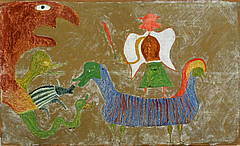 Ilija Bašičević Bosilj (1895, Šid, Avstroogrski imperij – 1972, Šid, Jugoslavija) Rojen v kmečki družini, je Ilija večino svojega življenja preživel ob delu na zemlji in v vinogradu. Med drugo svetovno vojno je moral zaradi nacističnega režima, ki je njega in njegova dva sinova obsodil na smrt, prebegniti iz domačega kraja na Dunaj. Med bivanjem tam je zbolel za tuberkolozo in se bil prisiljen vrniti domov, kjer pa je bolezen še otežila že tako garaško življenje. Po tem, ko so mu zemljo odvzeli komunisti, se je Ilija posvetil novemu poglavju svojega življenja in pričel slikati. Od leta 1957, ko so nastala njegova prva dela, do svoje smrti leta 1972, je bil slikar. Zaradi dejstva, da je bil njegov starejši sin Dimitrije Bašičević (danes bolj znan kot mednarodno priznan konceptualni umetnik Mangelos) ugleden umetnostni kritik, so številni podvomili, da je Ilija resnično avtor svojih slik, zato je bil leta 1965 prisiljen slikati pred komisijo v Zagrebu. To je edini primer v zgodovini umetnosti, ko je bil umetnik postavljen v tak položaj, da bi s tem dokazal, da je res avtor svojih slik. Kot slikar je ustvarjal s strastjo, vsak dan, največkrat pozno ponoči. Umetnost je zanj postala religija in poklic. Njegova dela so bila razstavljena po vsem svetu; zelo zgodaj je prišel do svoje prve profesionalne pogodbe, zastopala ga je galerija Hilt iz Basla v Nemčiji. Jean Dubuffet je odkupil nekaj Ilijevih del v letu 1963, srečamo pa jih tudi v zasebni zbirki Maxa Billa. Ilija Bašičević Bosilj je ustvaril preko 2000 slik in risb. Precejšen del hranijo v muzeju Ilijanum v Šidu. Leta 2007 ga je londonska revija Raw Art Magazine uvrstila na seznam 50 svetovnih art brut klasikov. Njegova dela so bila večkrat razstavljena ob mojstrih, kakršni so Picasso, Klee, Kandinsky, Chagall, Darger in Rousseau.