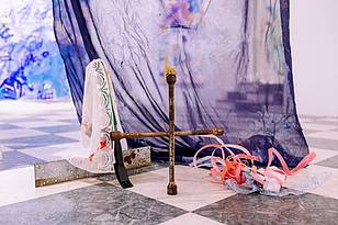 < Nina Stopar: Ples z mesečino, mešana tehnika, 2023–24; foto: Dobran Laznik