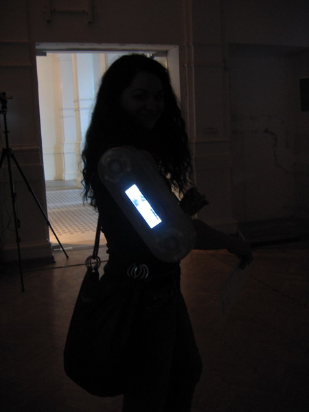 Opremljeni z "ArmPodi" (napravo, ki se tesno prilega telesu in je nanj pritrjena z robotsko sponko) ste imeli priložnost izkusiti izjemni mobilni zvočni- in videostreaming sistem. Infra rdeči senzorji locirajo gibanje obiskovalca v prostoru in glede na njegov položaj projecirajo določene videoklipe. Na ta način obiskovalec ustvarja individualni mix videoklipov in zvoka, glede na gibanje skozi razstavni prostor.  Projekt TROIA-ArmPod je drugi del Digitalne komune, ki je v prvem delu povezala slovenske ustvarjalke in ustvarjalce, ti so svoje tedensko sodelovanje zaključili z intermedijskim nastopom in zdaj se to sodelovanje nadgrajuje. Več o projektu Digitalna komuna 1 si lahko ogledate tukaj!