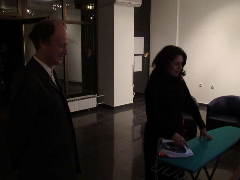 Peter Tomaž Dobrila: PEGLA White Nights festival, Glavni trg, Skopje PEGLA – ko je likanje v sprostitev, zabavo in užitek PEGLA je intermedijska namestitev, interaktivno likanje s pomočjo računalniško podprte multimedije in medmrežja (Interneta) in je nadvse primerna za praktično uporabo doma in v gospodinjstvu. Sestavljena je iz standardnega likalnika in likalne deske, ki sta modificirana v vmesnik – likalnik dobi vlogo miške, likalna deska pa vlogo podlage –, s katerim lahko rišemo in kreiramo glasbo ali brkljamo po svetovnem spletu. PEGLA je lahko tudi performans, ki ga izvajamo kot koncert in živo slikanje, tako v samostojni kot skupinski izvedbi – PEGLA orkester. Hkrati lahko svoja umetniška dela tudi natisnete in risbe obesite na zid, da jih boste ponosno kazali družini, prijateljem in sosedom. Lahko si skomponiramo svojo najljubšo melodijo in narišemo najlepšo sliko, ki bo v ponos celi družini. Še v večje veselje nam bo skupno koncertiranje in risanje, tako lokalno znotraj družine, kakor tudi s pomočjo medmrežja s prijateljicami in prijatelji, sosedi in sosedami, znanci in znankami. Hkrati nam PEGLA omogoča tudi, da se likanja učimo, saj jo lahko s programskim vmesnikom uporabljamo za učenje likanja po različnih stopnjah, od najlažje (rjuha) preko raznih zahtevnosti (hlače, krila, srajce) do najtežje (plasirana ženska bluza). S PEGLO vračamo veselje do tega opravila v vsako hišo, v vsako stanovanje in v vsako gospodinjstvo; likanje naj spet postane kreativno opravilo v veselje celi družini. Z idejo tovrstnega likanja umetniški projekt tudi stimulira moške k emancipaciji. PEGLA vrača likanju družabnost, veselje in srečo... likanje je v zabavo!