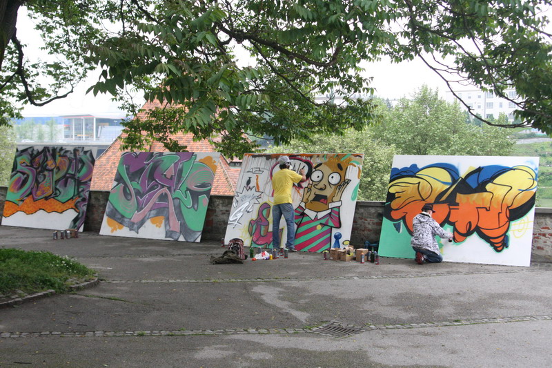 Projekt "Mariborski grafiti" je nastal v sodelovanju Galerije DLUM in Galerije Kibela (MMC Kibla).