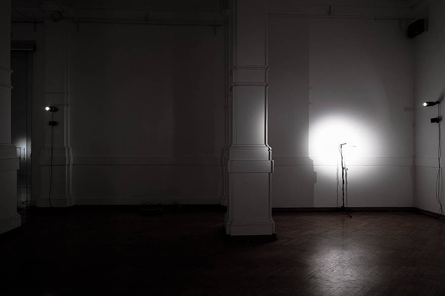 Z razstavo umetnik nadaljuje umetniško raziskovanje nadzornega sistema, s katerim je pričel pred 5 leti in v katerem ga preizprašuje tako v kontekstu naraščajoče družbene kontrole kot tudi njegovih kreativnih potencialov. Prisvajanje strukture zaprtega kroga, značilne za video nadzor, mu omogoča raziskovanje odnosa med zvokom in sliko. Za razliko od predhodnih del, v katerih je uporabljal nadzorne kamere, se bo v Mariboru osredotočil izključno na medij zvoka. Sedem usmerjenih zvočnikov, razporejenih v dva zaprta kroga, od katerih je en vstavljen v drugega, oddajajo zvok, ki ga preko mikrofona prejemajo iz okolice, in tako ustvarjajo pogoje za zvočno izkušnjo, ki ohranja zvočni feedback. Delo sodi v serijo eksperimentov, pri katerih je rezultat kljub tehnični stabilnosti instalacije nepredvidljiv.