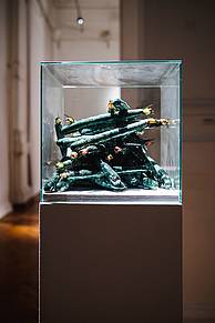 Mirko Bratuša, eden najprepoznavnejših in najplodovitejših kiparjev pri nas, je razen razstav in instalacij podpisal tudi veliko javnih plastik in spomenikov, k svojim delom pristopa z različnimi tehnikami in vanje vključuje razne materiale, od naravnih, in sicer gline, lesa, kovine, zlasti brona, do umetnih, npr. poliestra, pa tudi industrijskih proizvodov. Nemalokrat jih oživi z elektriko, toplotnimi grelci in vodo, doda zvok ali celo vanje vplete nove tehnologije. Slojevitost materialov, večplastnost njegovih motivov in vsebin del nas s hkratnim vzporejanjem arhaičnih in sodobnih tematik zapeljejo v alegorične, simbolične in fantastične podobe, pri katerih je detajl enako pomemben kot celota.