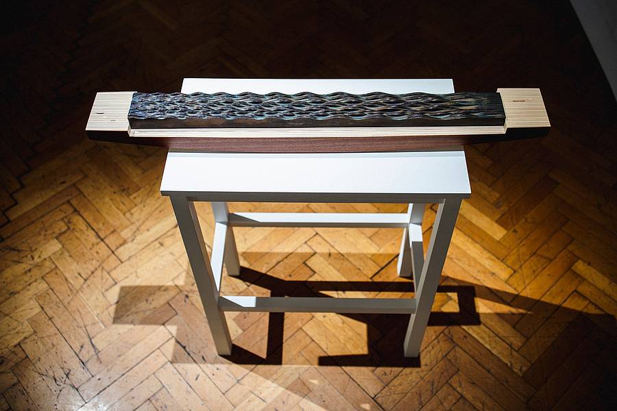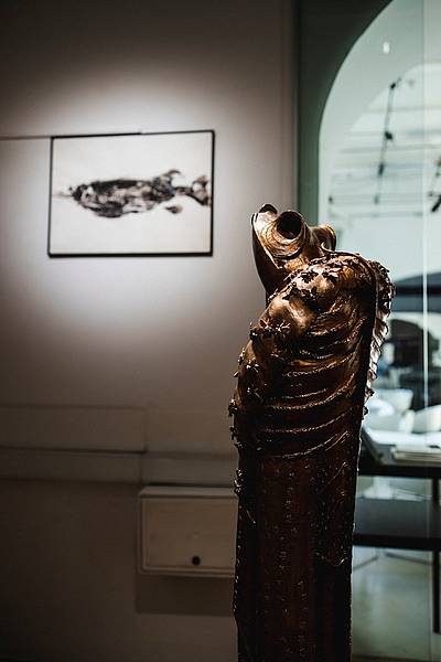 < Mirko Bratuša: Več jih je Drago, les in bron, 88 x 91 x 32 cm, 2024 (detajl); foto: Jaka Babnik