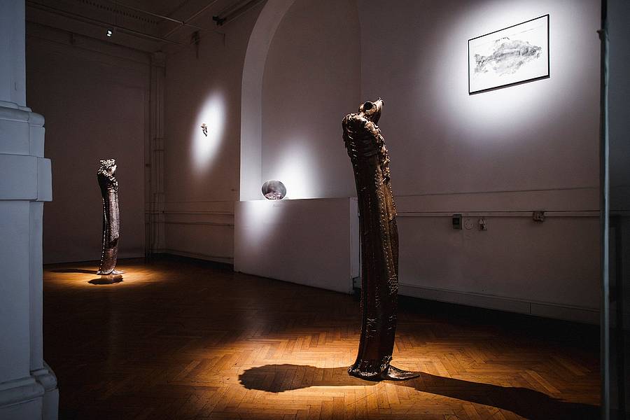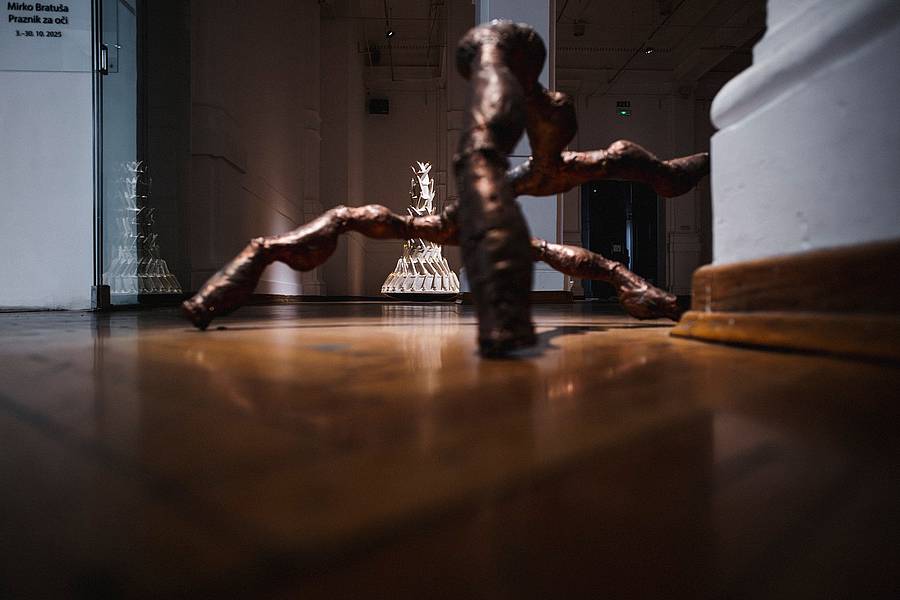 Kot Mirko Bratuša začara z magičnostjo figur, odčara z njihovo prezentnostjo in udari v pleksus s paradoksalnostjo in banalnostjo bivanja kot ne zgolj eksistencialnega idioma ali eksistenčne stiske, ampak kot eksistencialističnega razmisleka, ki poteka tako na nivoju fizičnega in fizikalnega kot metafizičnega in mističnega. Ter imanentno, intimno mitskega. Njegovi ’stvori’ so prijazni in čuječi, a obenem tudi razvratni in hrumeči, ko bodisi na piedestalu manifestativno razkazujejo svojo lepoto, ne glede na njihovo stanje, bodisi se zveriženo utesnjeni ne pustijo motiti v predstavah o lastni veličini in njim namenjeni vlogi, ki jo morajo odigrati v nekakšnem animiranem nizu različnih poz, pozicij in grimas. Izrazno in estetsko popotovanje iz prazgodovine v sedanjost se vzpostavi kot identifikacijska točka samorefleksije, s katero smo soočeni tu ta hip, na izletu v brezčasnost. Zbegani povezujemo prostore in svetove, napolnjene z vehementno prezentnostjo in potisnjeno tesnobnostjo, in iščemo skrite in skrivnostne kode za čudežni odriv v odrešujočo prihodnost.