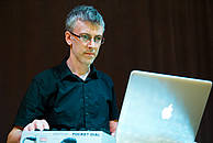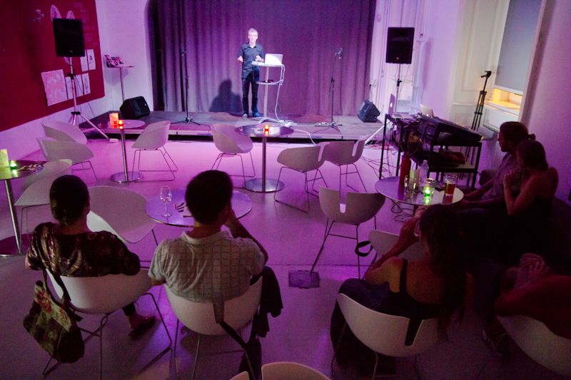 Todd Harrop, Asja Grauf, 10. 8. 2012Todd Harrop 10. 8. 2012, 20:00 Zvočni umetnik Todd Harrop deluje na področju glasbe in gledališča. Njegove skladbe so bile predvajane v Kanadi, ZDA, Novi Zelandiji, Italiji in Nemčiji. V zadnjem času raziskuje vrsto alternativnih uglaševanj, predvsem Bohlen-Pierceovo lestvico. Kot tolkalec je redno nastopal na festivalih sodobne ali klasične glasbe po Kanadi in Nemčiji. Odkar se je leta 2008 preselil v Montreal, so ga popolnoma prevzele angleške, francoske in jidiš gledališke scenografije. Navdušen nad novim izzivom in potencialom interdisciplinarne umetnosti je Harrop pričel sodelovati s številnimi umetniki v kombinaciji glasbe in gledališča, plesa ali radia. Je tudi producent popularnega glasbenega dokumentarca kanadske televizijske družbe Canadian Broadcasting Corporation, ki govori o zvočni pokrajini sodobnega kmetovanja. Ustvarjal je glasbo za številne koreografe – za ples na odru, film ali celo kot del opere na prostem, kjer uporabi zapuščen avtomobil, najden v gozdu. Ob podpori Sveta za umetnost in literaturo iz Quebeca (Conseil des arts et des lettres du Québec) je preživel kot rezidenčni umetnik v uveljavljenem umetniškem centru Banff Centre for the Arts v Kanadi, v Montrealu pa nadaljuje z raziskovanjem na univerzi Concordia na področju glasbeno-gledališko odzivne medijske tehnologije.